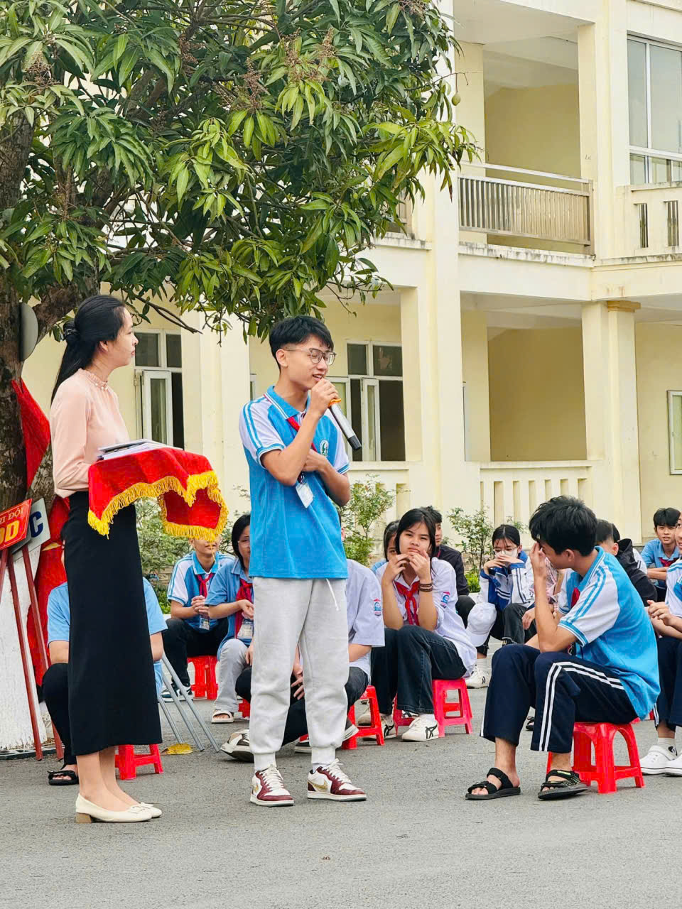 🌱🌱 Thầy Trần Hoàng Sâm -Bí thư chi bộ, Hiệu trưởng nhà trường lên phát biểu và khai mạc “Ngày hội đọc sách ” với chủ đề “Sách – Khơi nguồn sáng tạo, mở lối tương lai”.